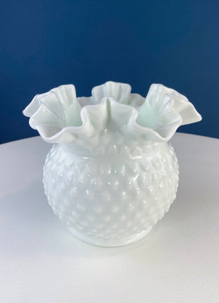 Classic Fenton Hobnail Vase with Ruffled Edge. Round Milk Glass Flower Vase. Collectible White Glass. Wedding Registry. Anniversary Gift.
