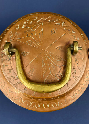 Antique, 19th-century copper Turkish shepherd's 4-Tiered Lunch Box. Hand-Hammered and Etched Bento Box with Brass Handle. Stackable Copper and Tin... Read More