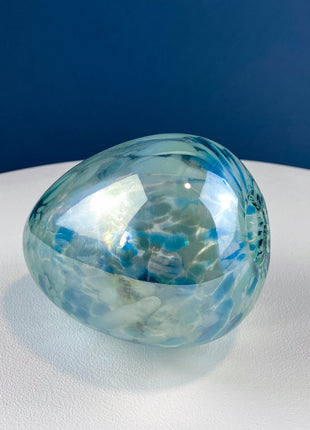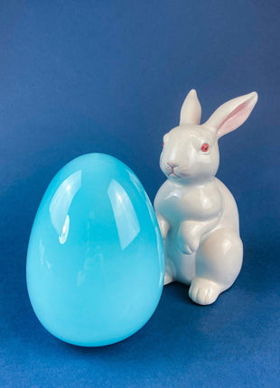Opaline Blue Glass Egg 6". Oversized Easter Egg Minimal Art Glass. Spring or Easter Decor. Easter Table Accessory. Kids Room.