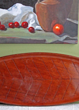 Tray or Platter. Large Solid Wood Tray in Shape of Leaf. Hand Crafted Leaf Long Platter forServing or Rustic Home... Read More