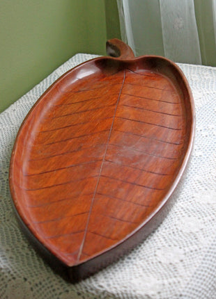 Solid Wood Tray in Shape of Leaf - Platter for Serving or Rustic Home Decor