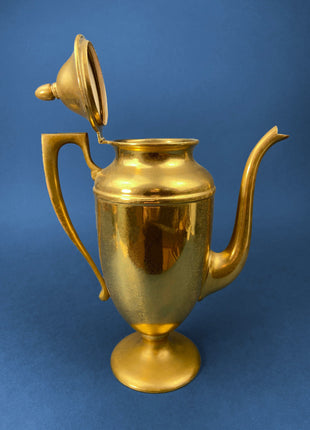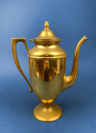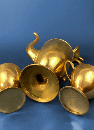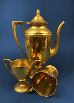 Vintage Brass Coffee Pot, Creamer & Sugar Bowl. Heavy Brass with Art Deco Style Handles. Elegant Coffee Service.