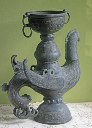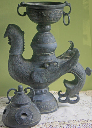 Antique Bronze Incense Burner. Asian Ritual Vessel. 18th-19th Century China Large Incense Burner in Shape of Bird. Museum Quality Artifact.
