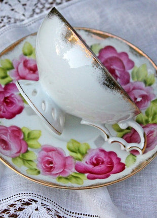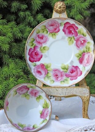 Antique Cup and Saucer. Hand Painted Roses by Riviera, Japan. Antique, very thin porcelain cup and saucer. Beautiful item, highly collectible. Very good vintage condition.