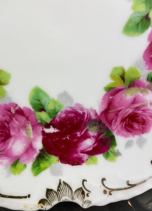 Antique Bavaria Dessert Plate: Hand-Painted Roses, Gold Rim (7.75")