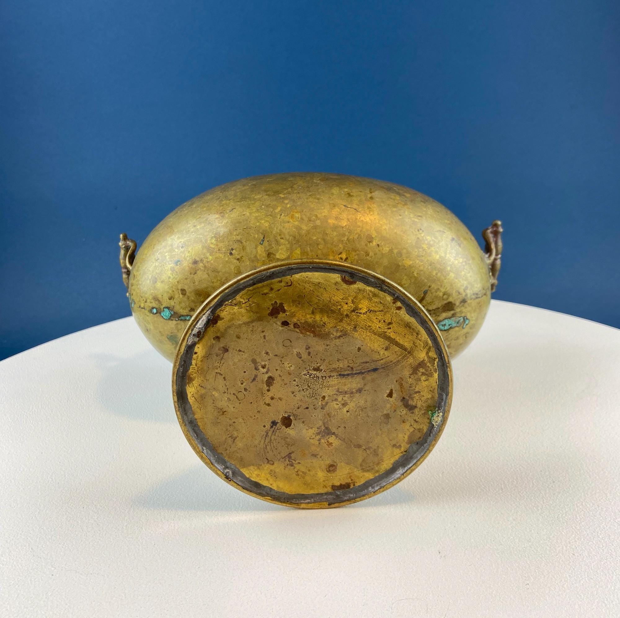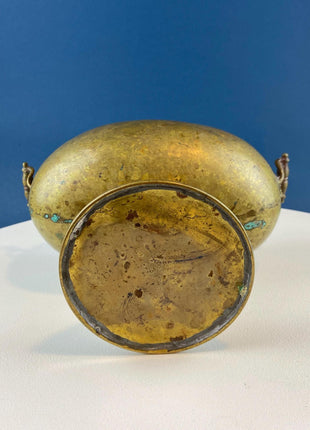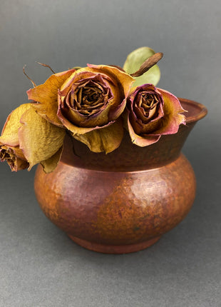 Antique Hand Hammered Brass & Copper Jardiniere Footed Flower Pot Vase. Herb Growing Container. Rustic Table Decor. 19th C Imperial Russia.