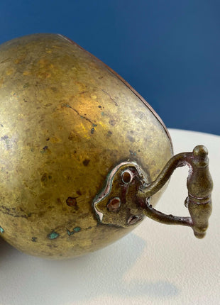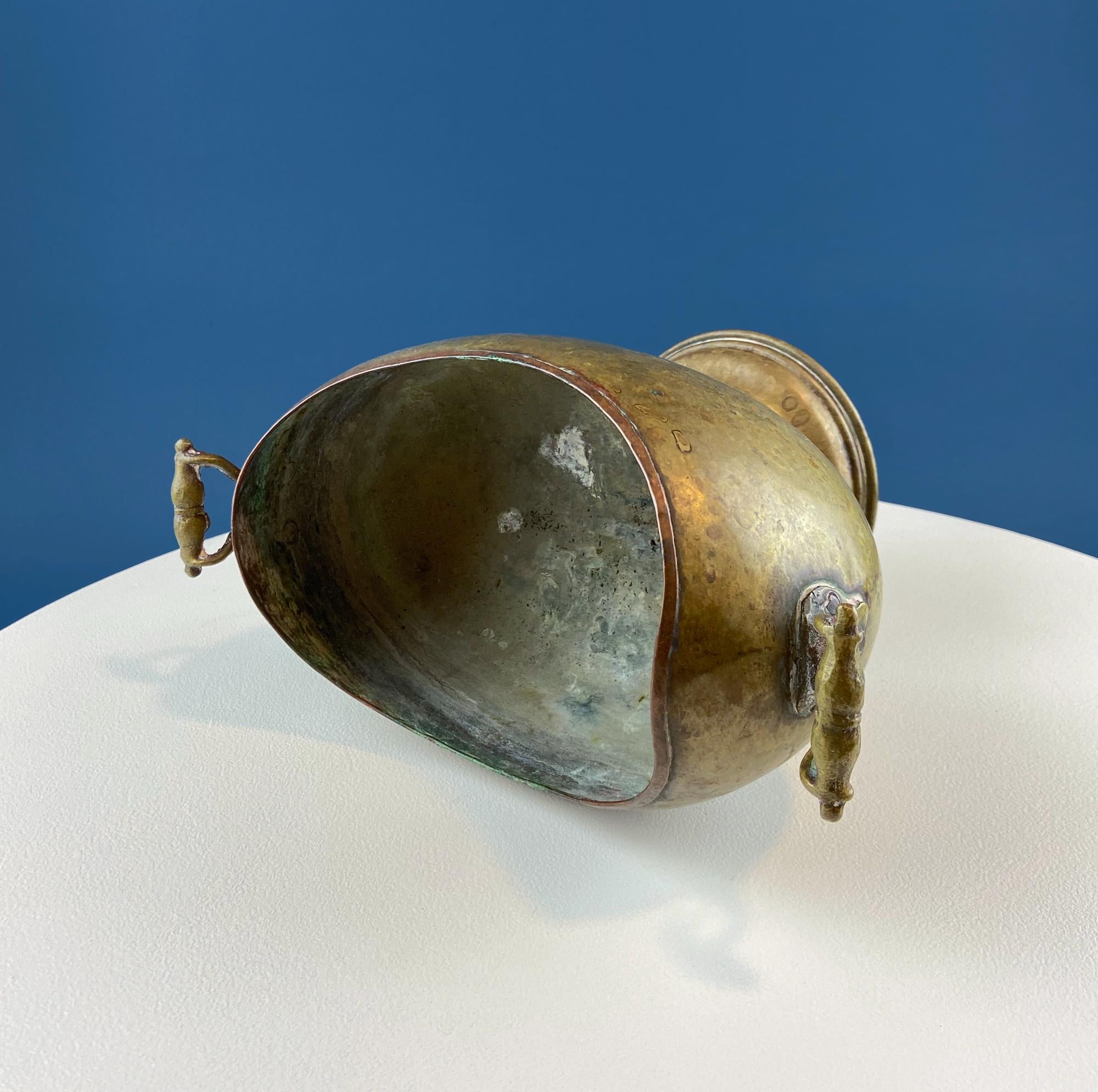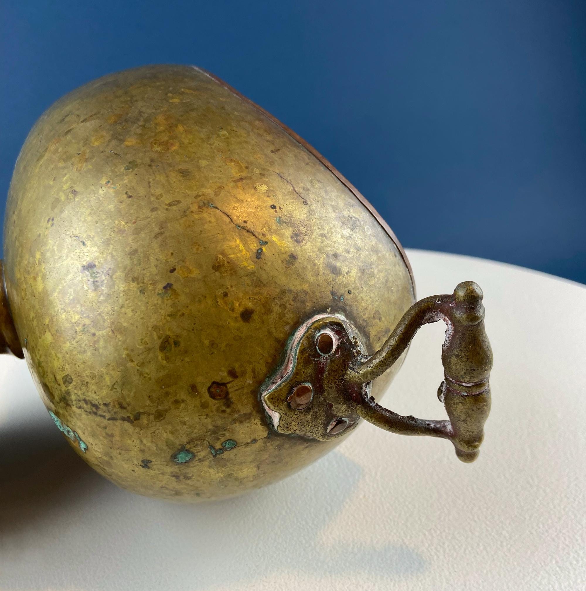 Antique Hand Hammered Brass Jardiniere Footed Flower Pot. 19th Century Russian Imperial Brass & Copper Handled Pedestal Vase. Unusual Silhouette.... Read More