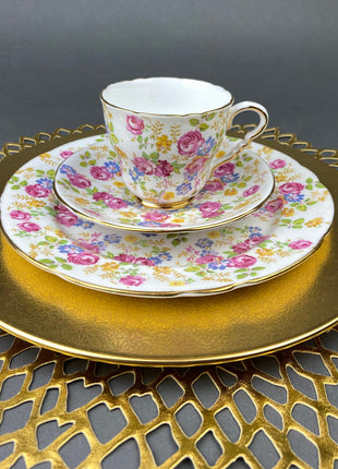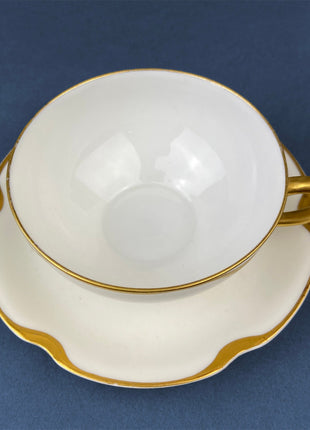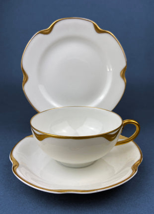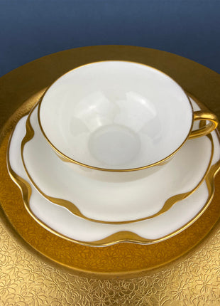 Antique Limoges Porcelain Tea Set/Trio. Teacup, Saucer & Bread/Butter Plate. Silver Anniversary. White China with Gold Rim, Haviland, France