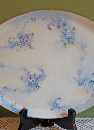 Platter Antique Oval Tray with Hand Painted Forget Me Not Flowers. Top Dresser Tray by J.P. France