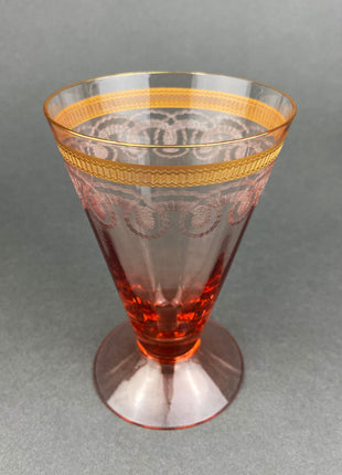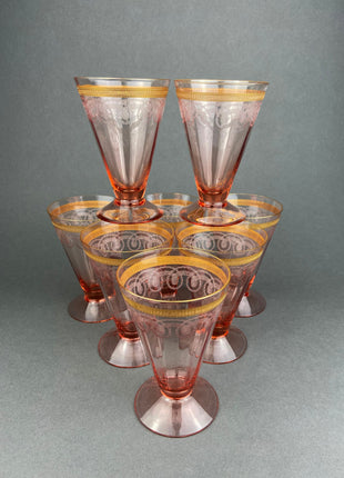 Antique Pink Crystal Water/Juice Goblets. Morgantown Etched "Necklace Pink Gold" Pattern. Set of Eight 8oz Footed Tumblers. Replacements. Very Good... Read More