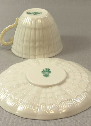 Belleek Cup and Saucer. Sea Shell Pattern Tea Set Made of Dainty Porcelain in Ireland. Antique Reg 0857. Antique Porcelain of Rare Beauty. You can almost see through to it. Excellent condition. No cracks, chips or any other damages. Marked by manufacturer. Perfect gift idea for a sophisticated person.