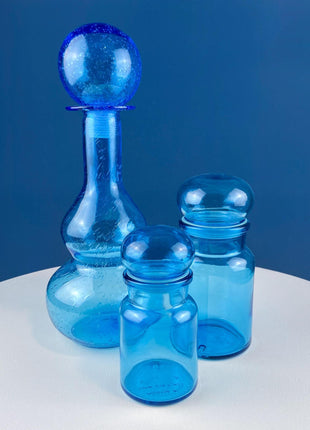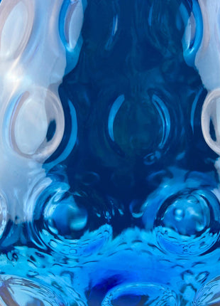 Blue Hand-Blown Glass Footed Vase. Large Goblet with Thumb Print Motif. Collectible Modern Glass. Home or Retail Decor. Interior Design Idea