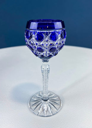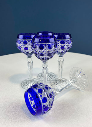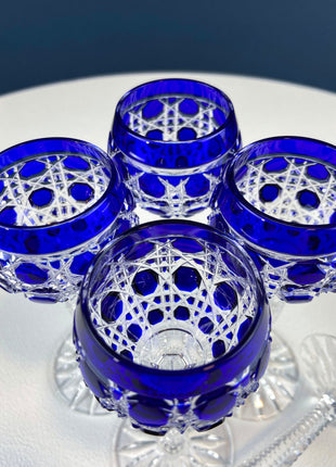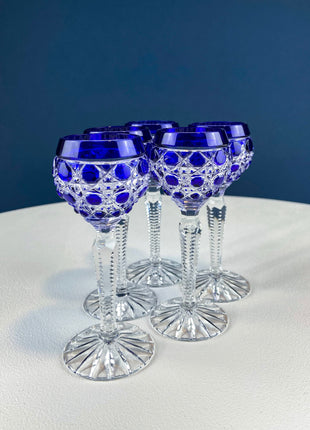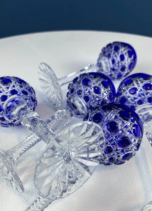 Bohemian Crystal Sweet Wine or Cordial Glasses. Set of Five Sapphire to Clear Cut Crystal Stemware. Amazing Color and Shine.... Read More
