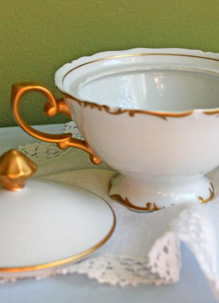 Antique Sugar Bowl with Lid by Brenton Regency. Made in Japan. Collectible porcelain. Mint condition.
