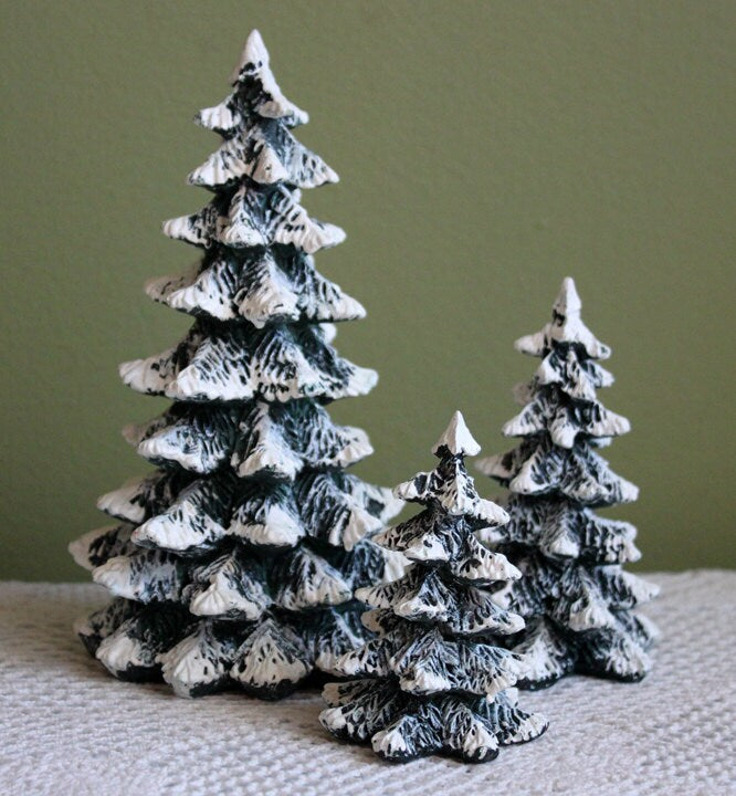 Christmas Trees for Village or Display. Resin Pines for Cabin, Lodge, or Home Decor. Christmas/Winter Celebration.