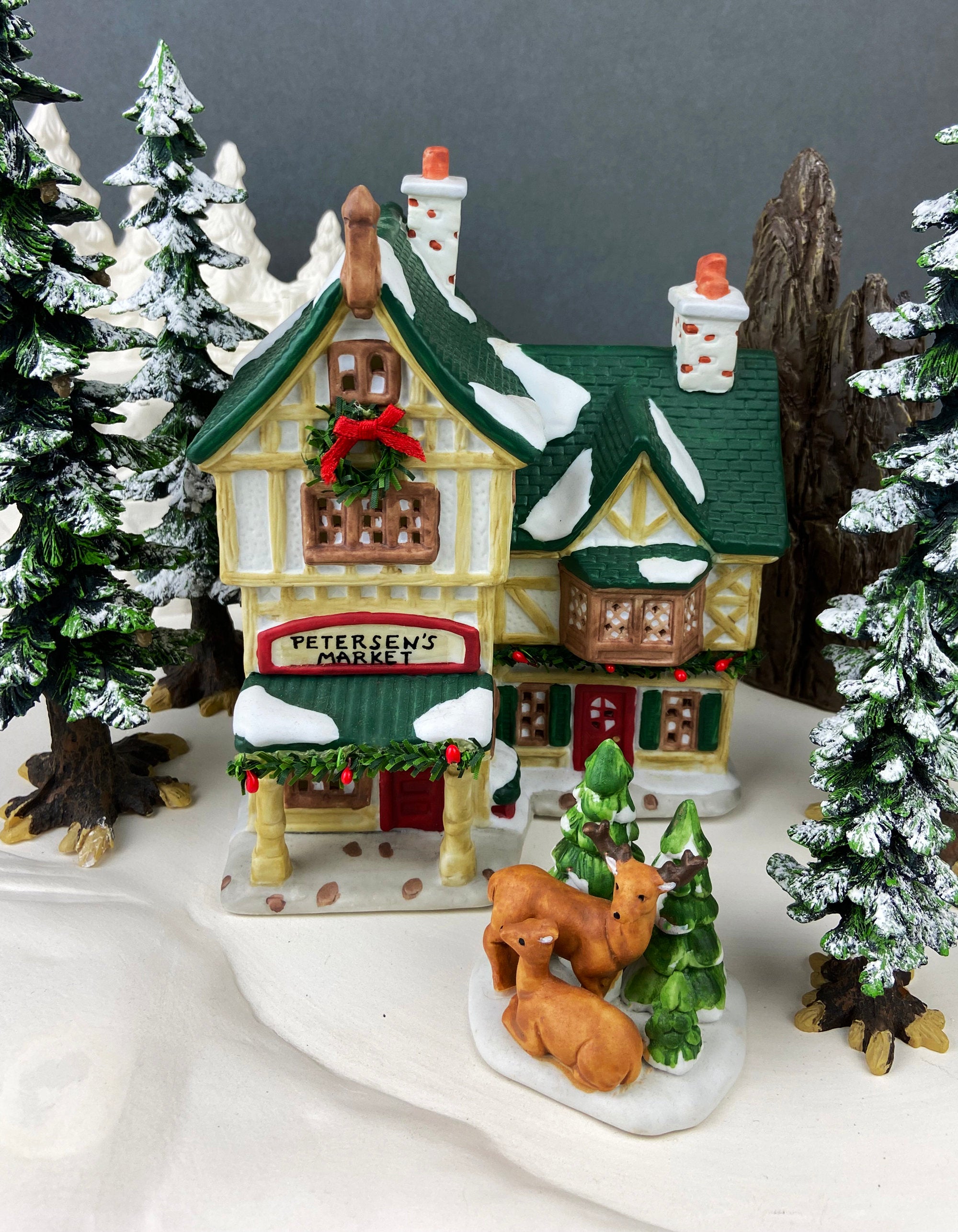 Christmas Village Accessories. Illuminated Petersen's Market. Christmas Valley.