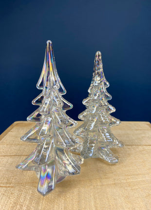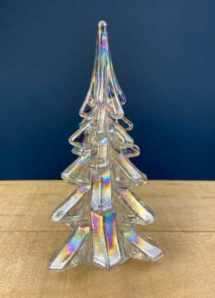 Clear and Iridescent Crystal Tree. Christmas Pine, Spruce. 6.25" Tall Glass Tree. Holiday Celebration.
