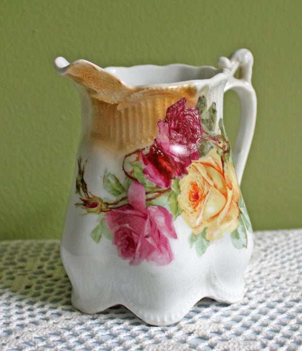 Antique Porcelain Creamer, Hand Painted Roses, Small Pitcher Made in Germany