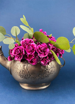 Pewter Teapot by Etain Zinn. Etched with Heart and Cupids Antique Teapot. Spout Shaped like Eagle. Back Handle with Lion.... Read More