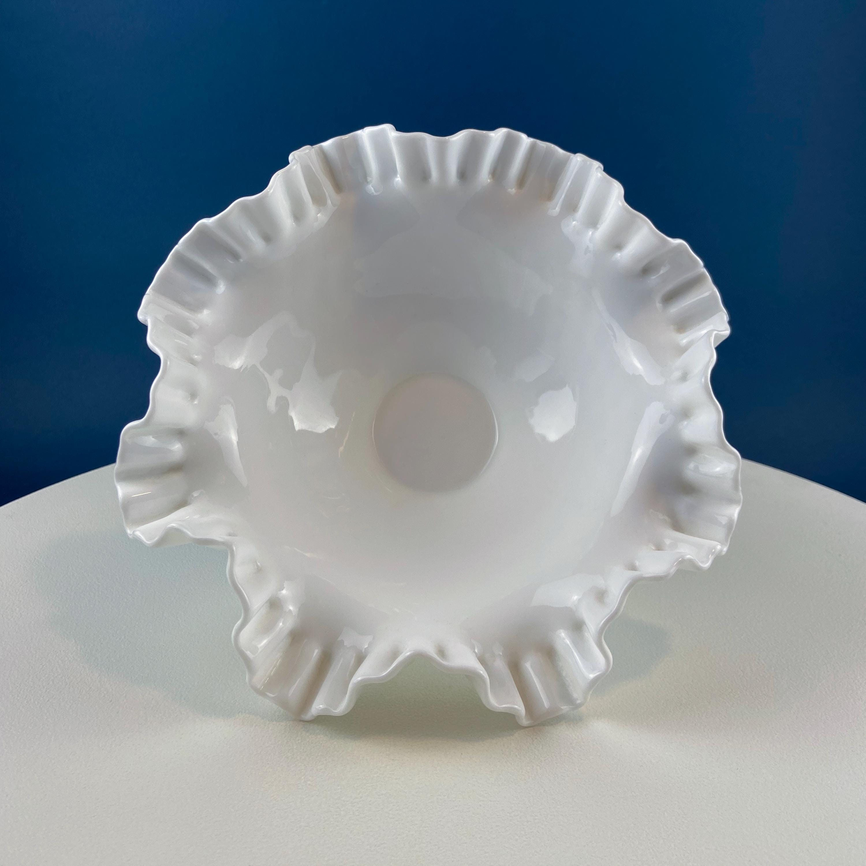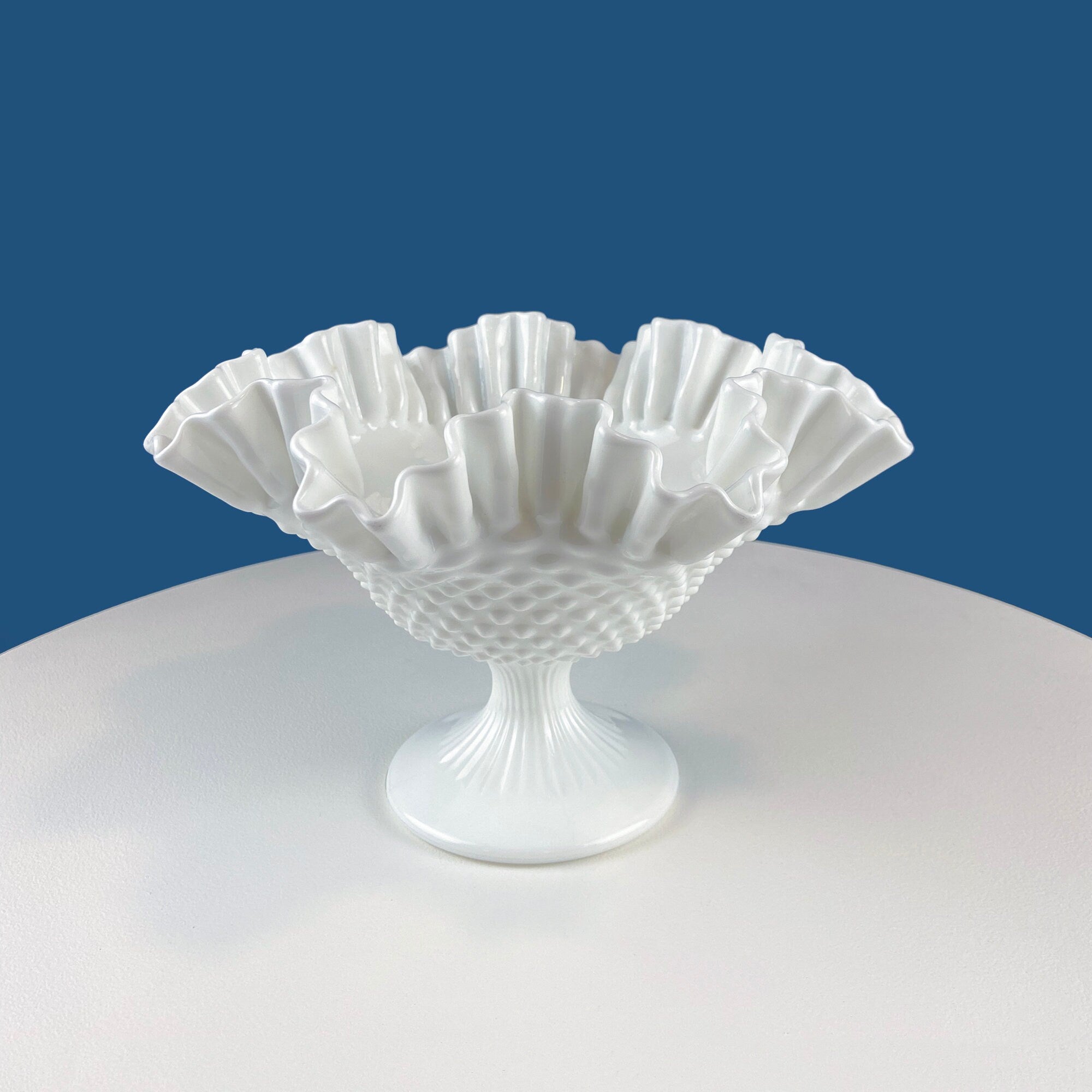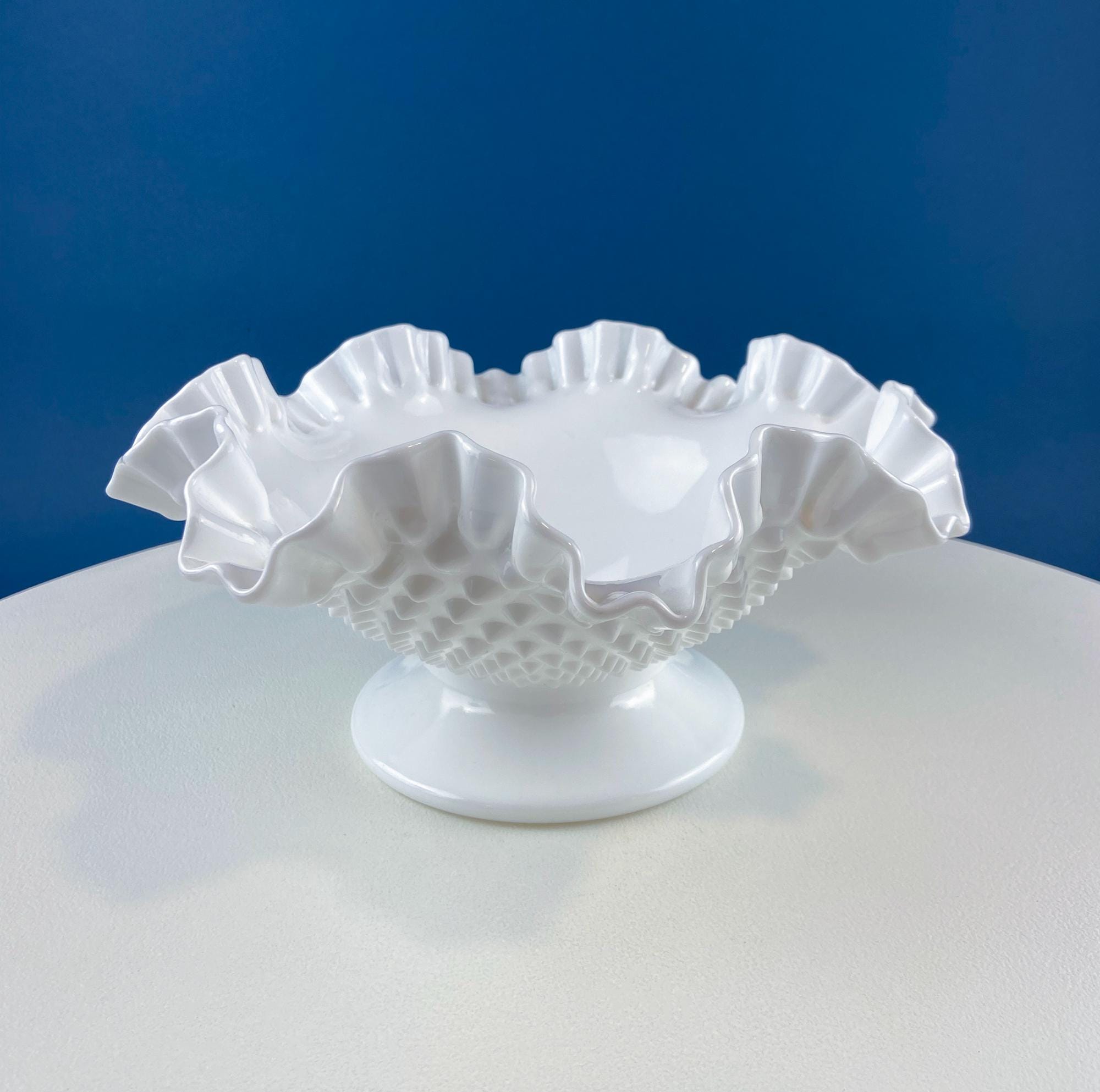 Fenton Milk Glass Hobnail Footed Bowl with Ruffled Edge. Collectible White Fruit Serving Dish. Dining Room Decor. Table Centerpiece. Wedding... Read More