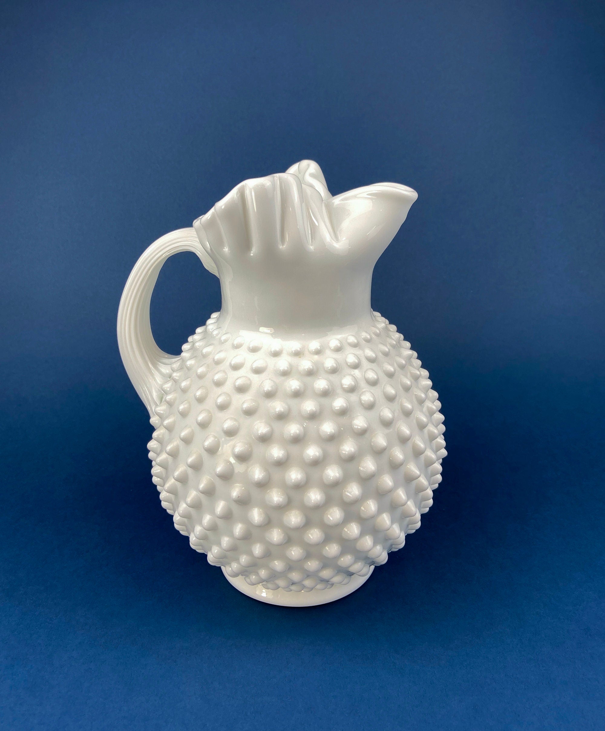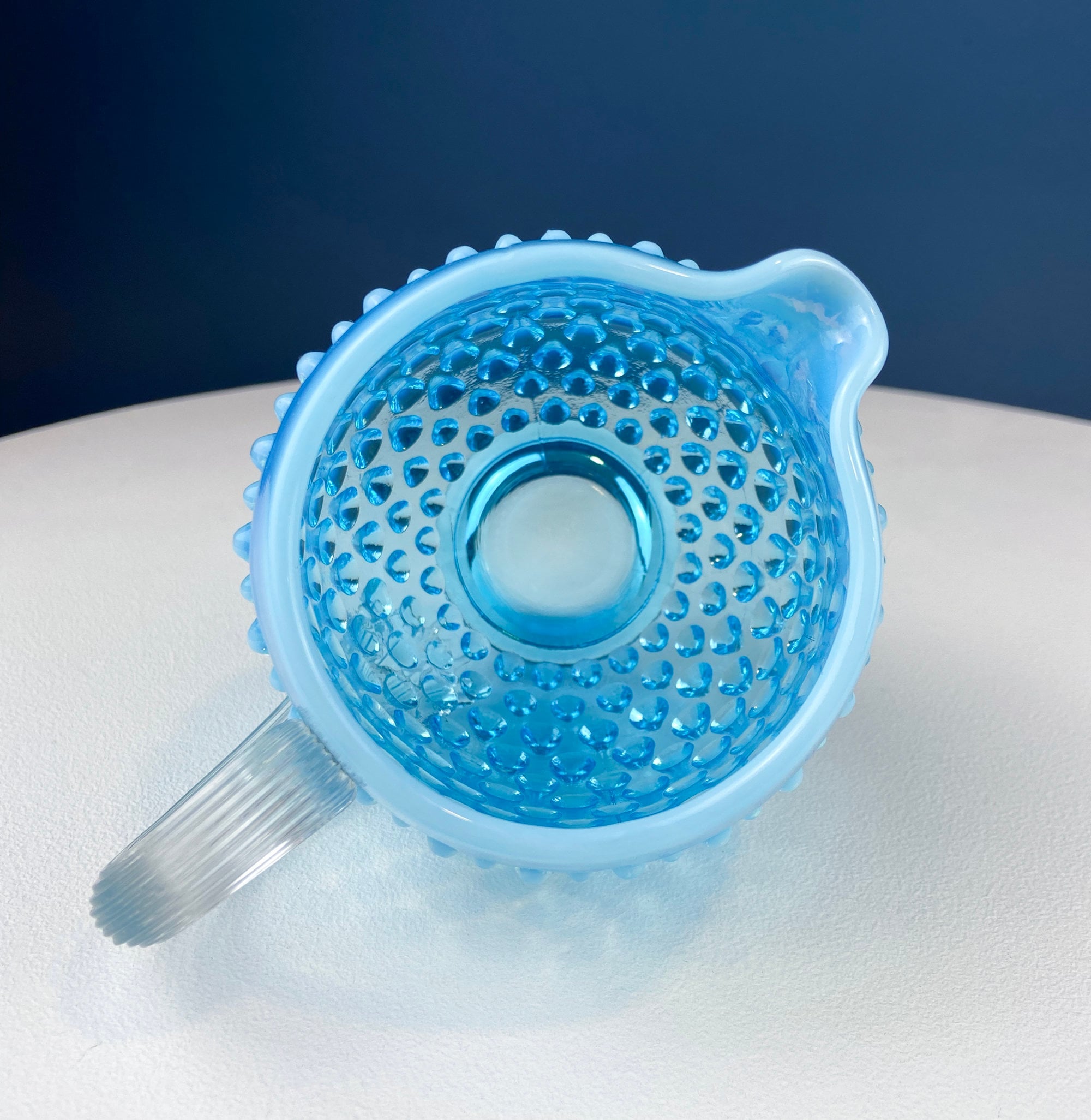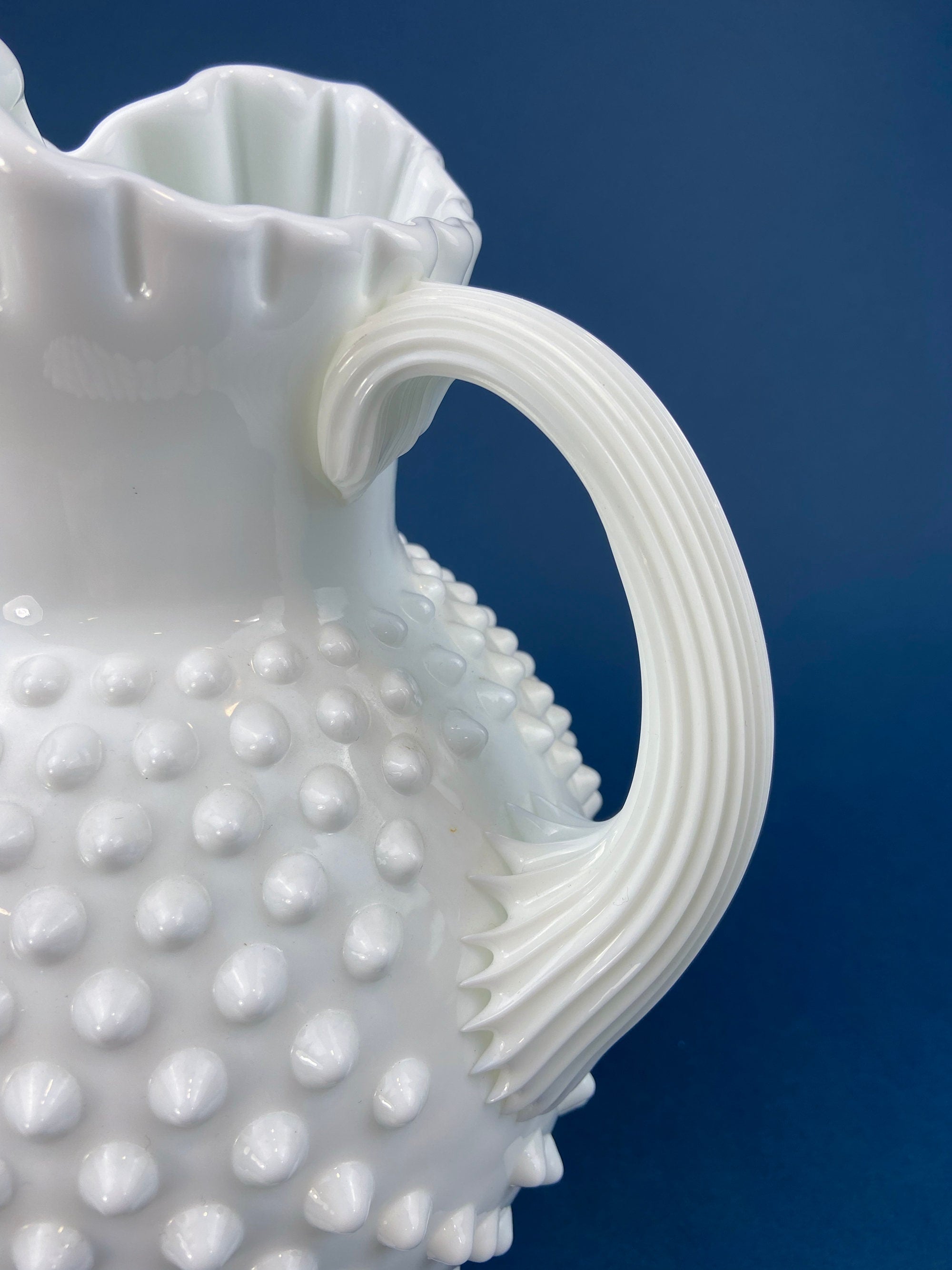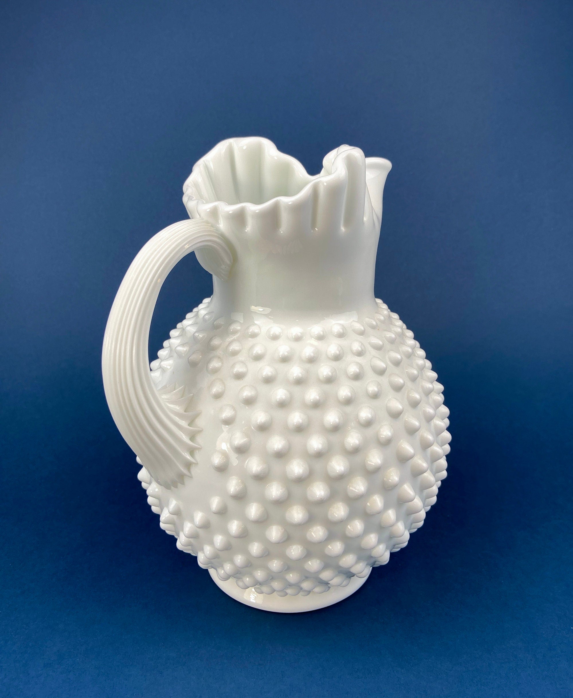 Vintage Fenton Pink Glass Pitcher with Hobnail Pattern and Pinched Clear Handle. Water, Juice, Milk Jug. Flower Vase. Collectible Glass.... Read More