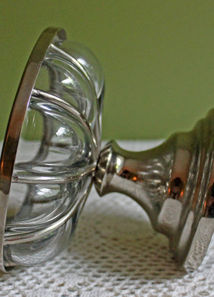 Vintage Shallow Glass Bowl with Metal Ribbed Trim