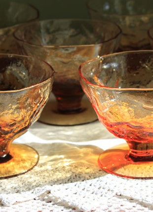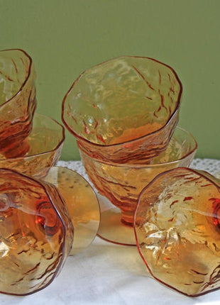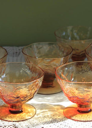Glass Dessert Dishes. Set of Six Footed Amber Glass Dishes. Glass Dishes for Serving Desserts. Ice Cream or Berry Serving... Read More
