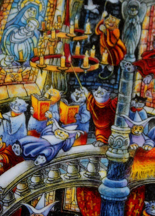 Holy Cats Plate by Bill Bell - Hand Painted Fairy Cat Scenes Inside a Castle