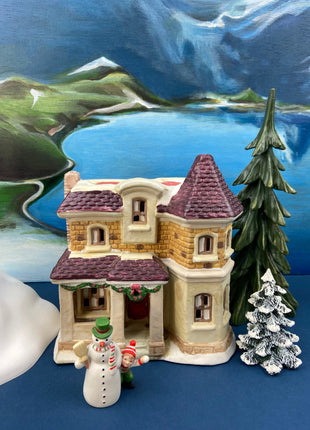 Illuminated Porcelain House. Medium-Sized Rustic Brick House with Red Roof for Christmas Village. Holiday Accessory. Traditional Home Decor. Lighting Kit... Read More