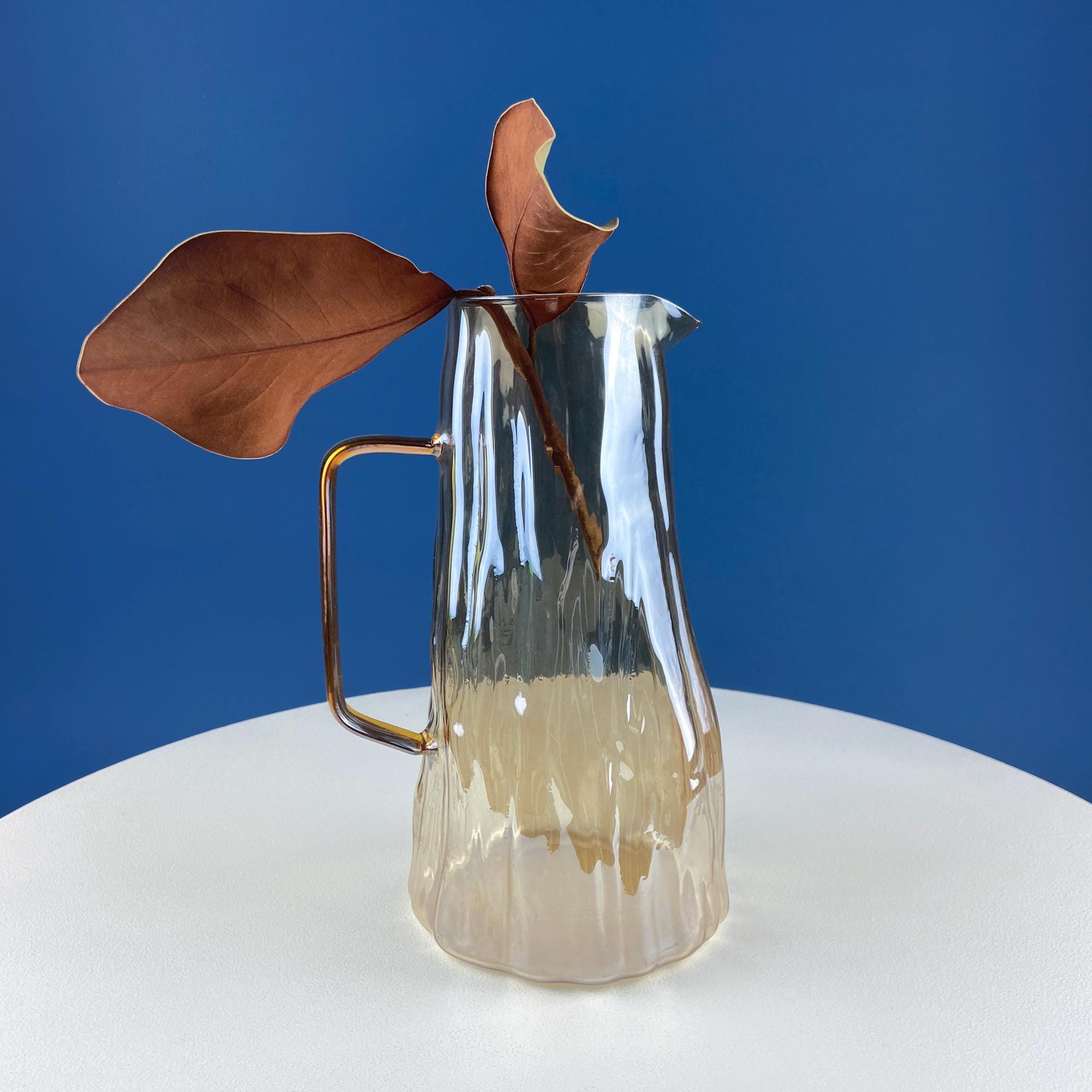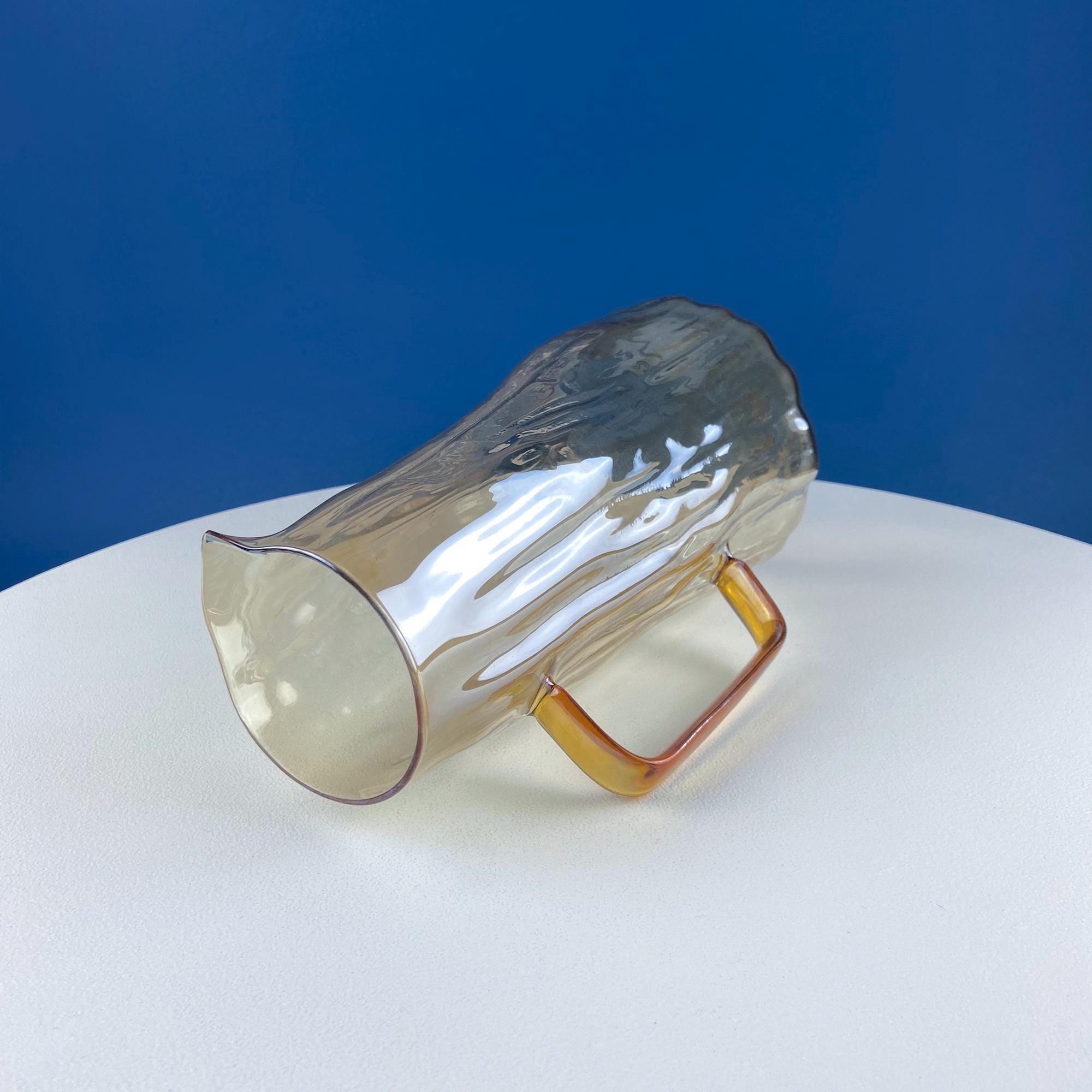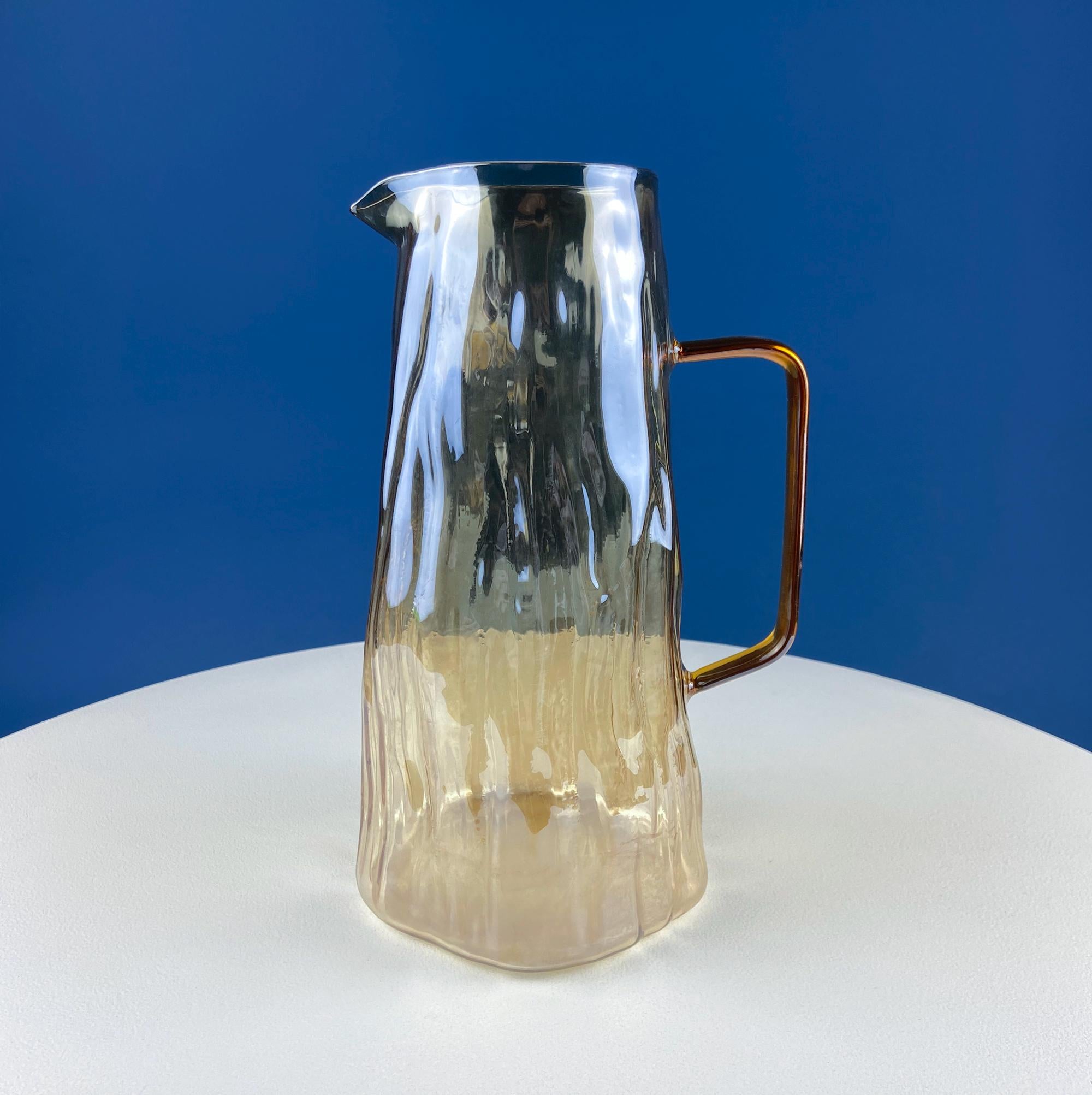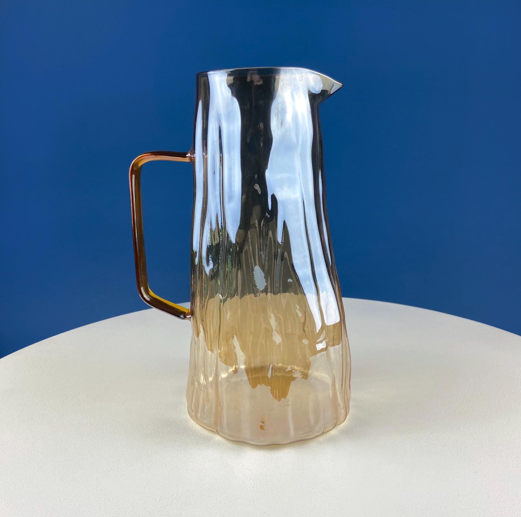 Iridescent Peach Bark Pattern Glass Pitcher Vase. Hand Blown 10" Water Ice Tea Juice or Lemonade Jug. Garden Party Lemonade Stand Tea Party.
