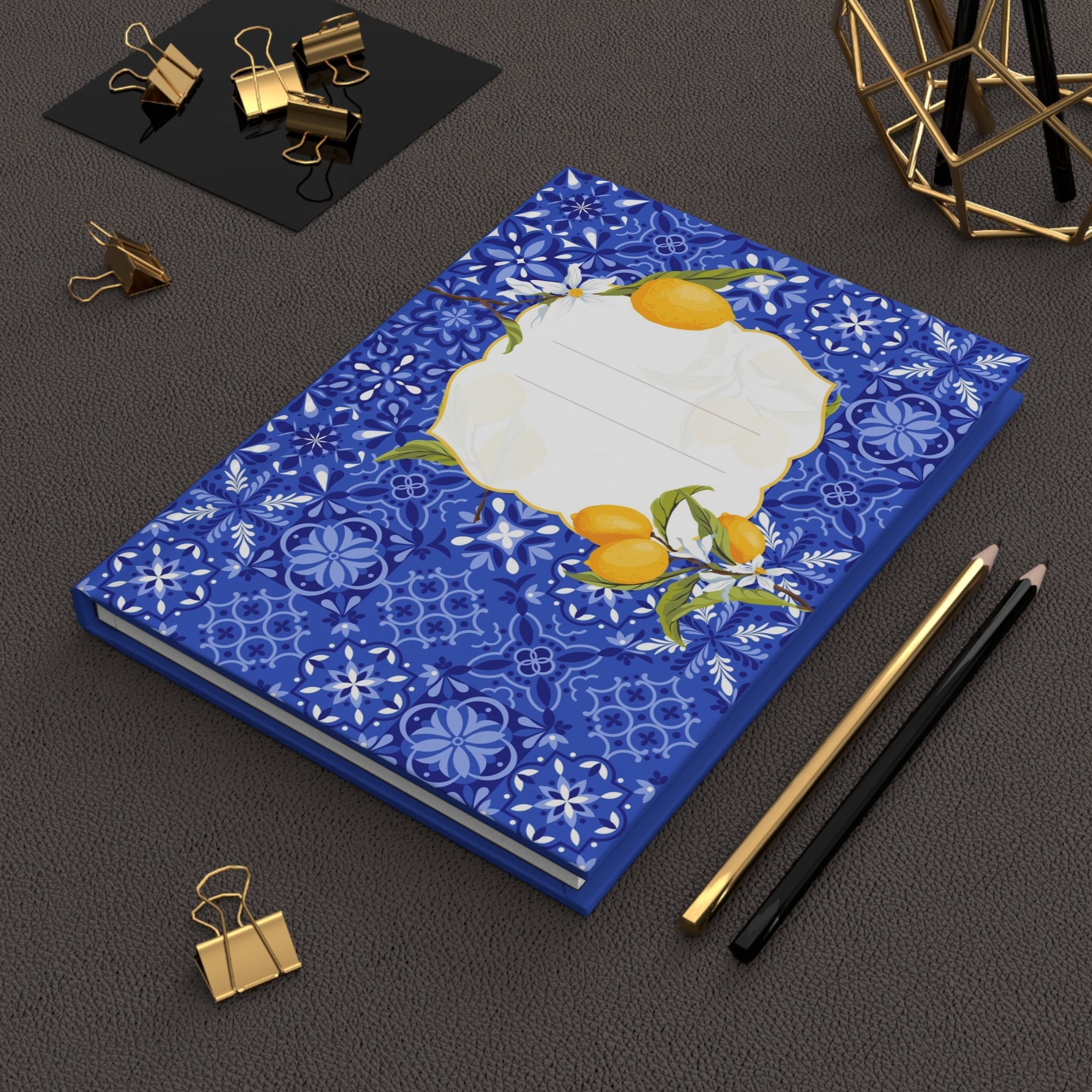 This hardcover journal carries the warm hush of a Mediterranean morning. Lemon branches and delicate blossoms weave across tile-inspired patterns, inviting you to slow down and write with intention. The matte laminated cover feels soft under your hand while the full wraparound print keeps the design continuous from front to back. Inside, 150 lined pages lie flat thanks to the sewn casewrap binding, ready for lists, sketches, recipes, or thoughts collected between sips of espresso or moments on a sunlit balcony. The look and weight of the journal bring a little coastal calm to everyday notes and seasonal rituals like travel planning, recipe collecting, or garden journaling.