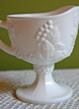 Milk Glass Creamer. Footed Pitcher with Harvest Pattern. Milk Glass Collectible Dish with Embossed Grapes and Vines. Collectible Dish for... Read More