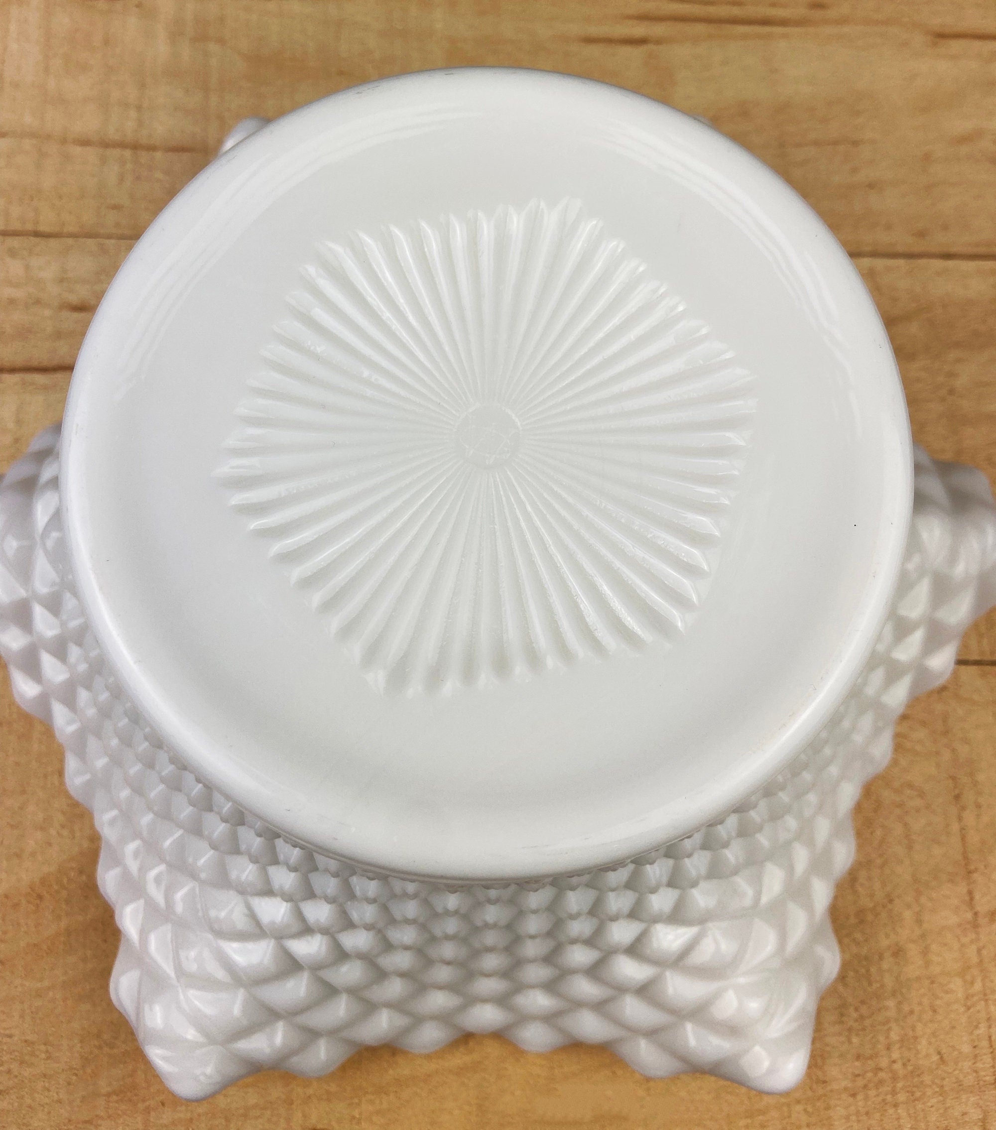 Milk Glass Serving Bowl by Westmoreland. Scalloped Edge, diamond point, English hobnail. Serving or decorative dish. Marked by the Manufacturer.... Read More