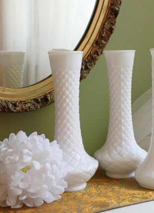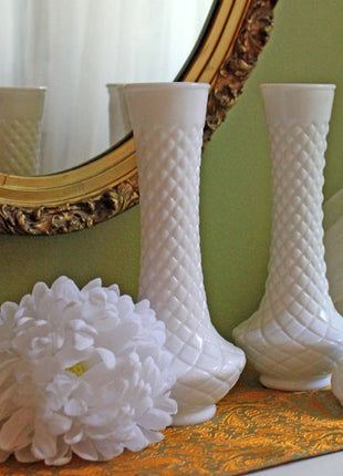 Milk Glass Vases. Set of 3 Vases with Diamond Pattern and Various Shape. Collectible or Wedding Milk Glass. Excellent vintage... Read More