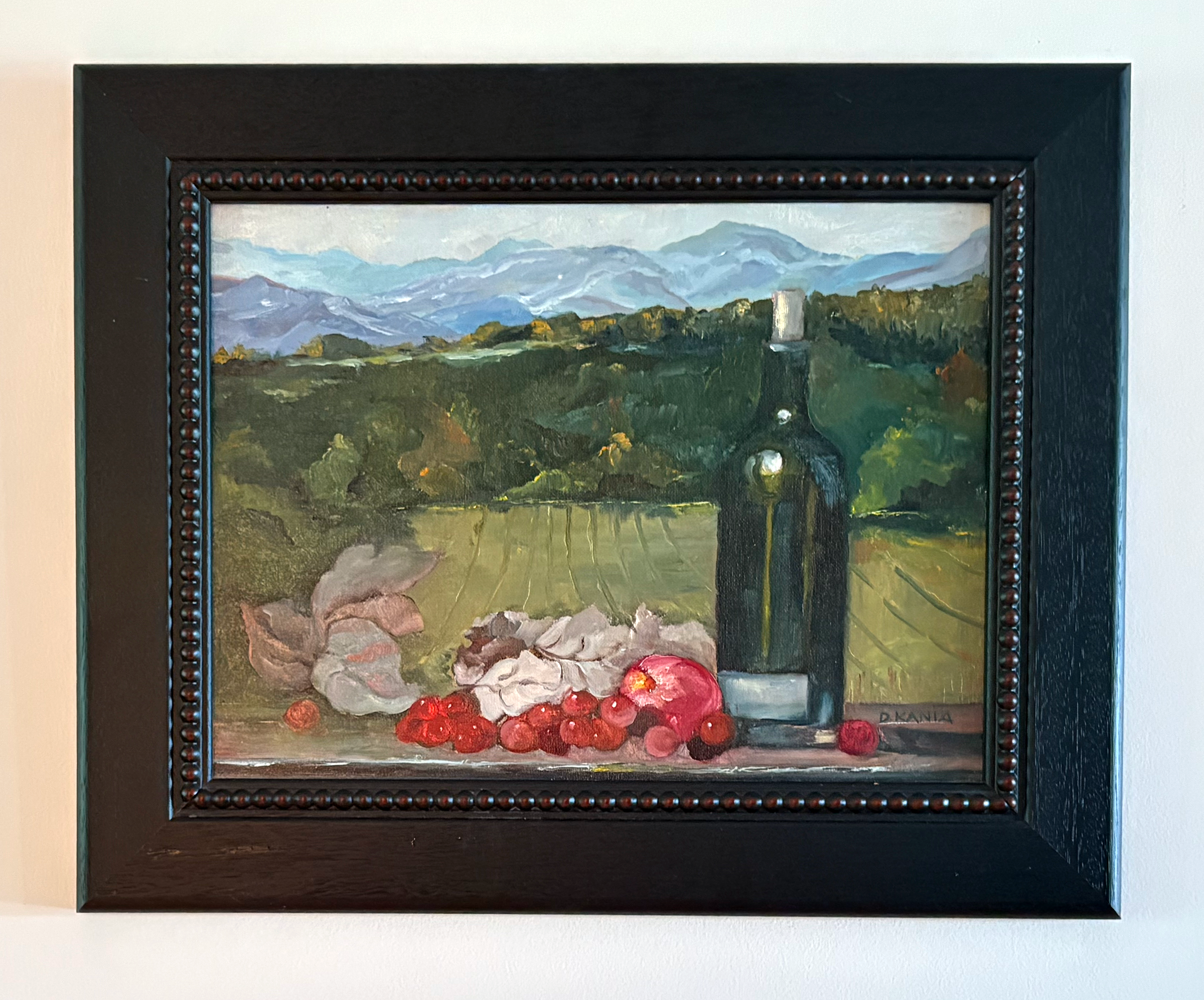 This original oil painting captures the essence of wine country with a beautifully composed still life featuring a wine bottle,... Read More