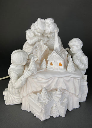 Pink Ceramic Christmas Village Pine Trees. Set of Two Ceramic Christmas Trees. Christmas Decor. Children's Room Holiday Display. Very Good Vintage Condition. Includes Main Winter Scene and two Large Blue Trees. Wire brush trees are not included.