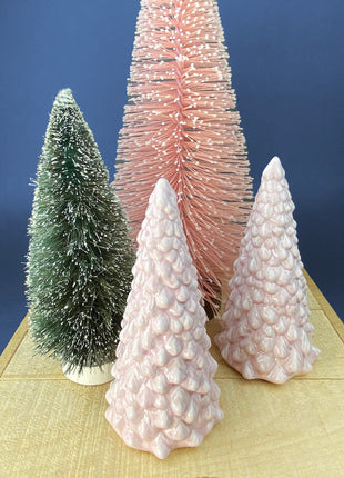 Pink Ceramic Christmas Village Pine Trees. Set of Two Ceramic Christmas Trees. Christmas Decor. Children's Room Holiday Display. , ir