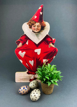 Plywood Cut Out of 1940's Circus Kid in Overalls. Print of Child Wearing Red, Heart Patterned Bloomers. Moonlight and Roses... Read More