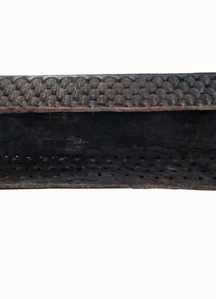 Bamileke African royal bed. Ceremonial bed made from a single piece of wood, with intricate carvings of human faces & animals. Most Bamileke art from Cameroon relates to kings and important chiefs, who defined their power by the display of precious objects during ceremonies. Beds were among the most important of these objects. This amazing antique piece of art is in a very good condition. There is only a very small crack at the bottom, practically invisible. Some dust deeply in crevasses.