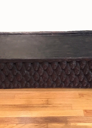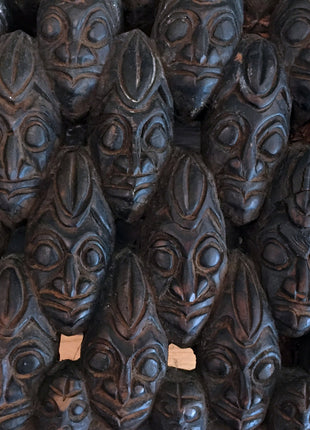 Royal Bed. African Bed. Royal Bamileke Art Bed Carved from One Piece of Wood. No nails or glue had been used. Bed created in Cameron. It has 210 Heads Carved. There are 105 heads carved on one side of a bed and another 105 on the other side. The entire bed has a raised rim on the top. The top is decorated with sculpted three water buffalo heads.