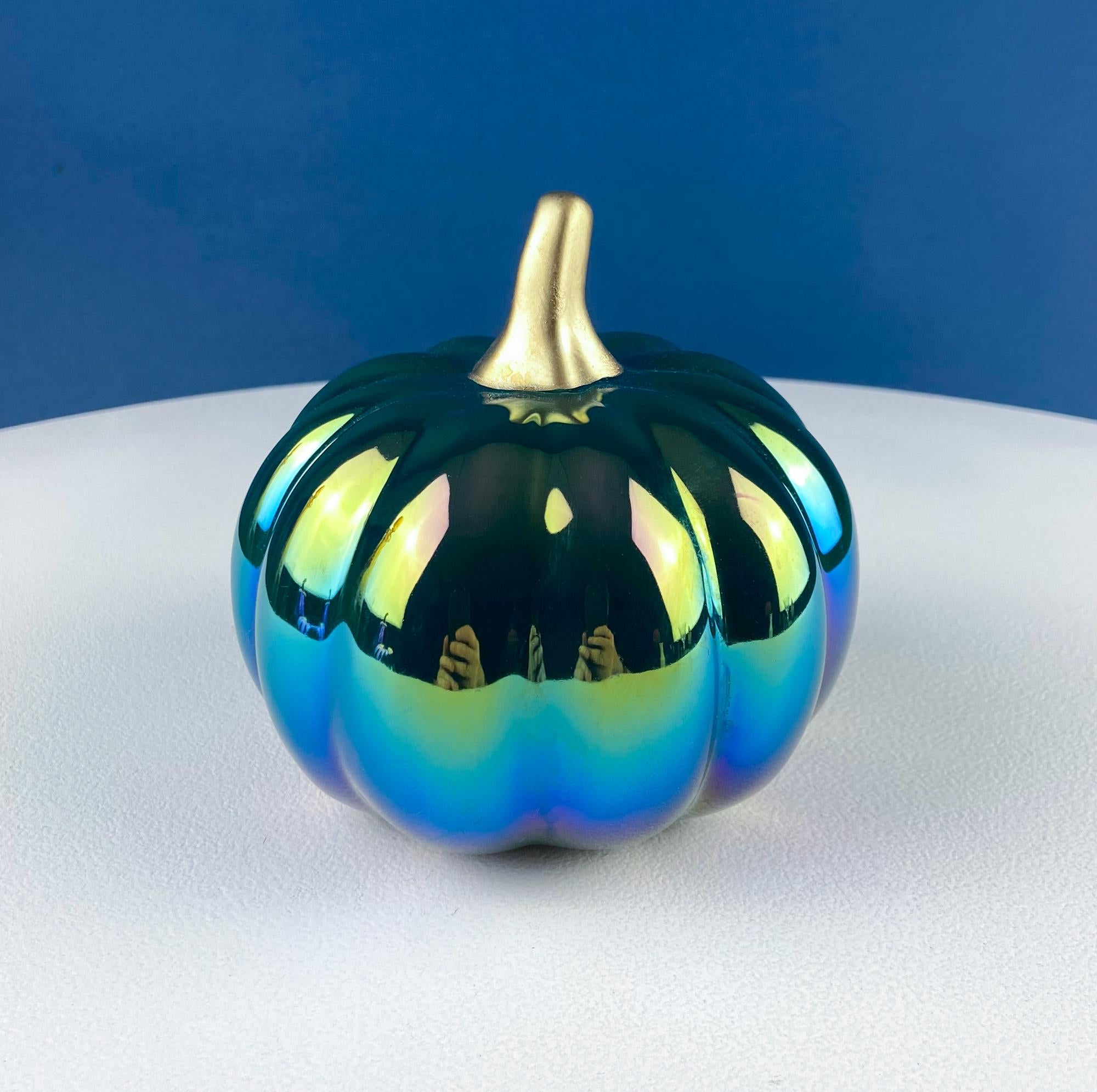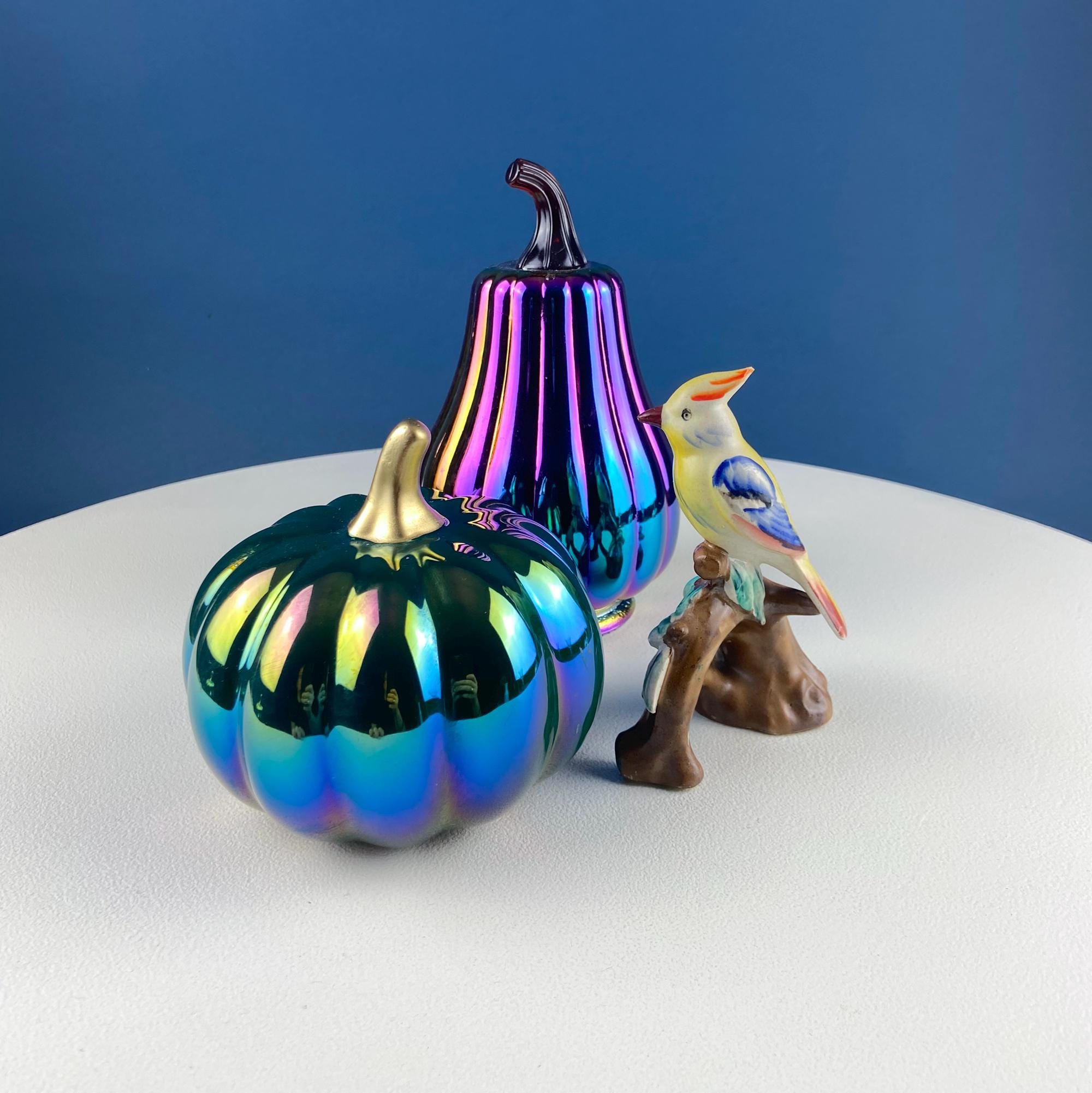 Set of 2 Iridescent Glass & Ceramic Pumpkins Gourds. Home or Retail Fall Decor. Halloween Display. Thanksgiving Table Centerpiece.
