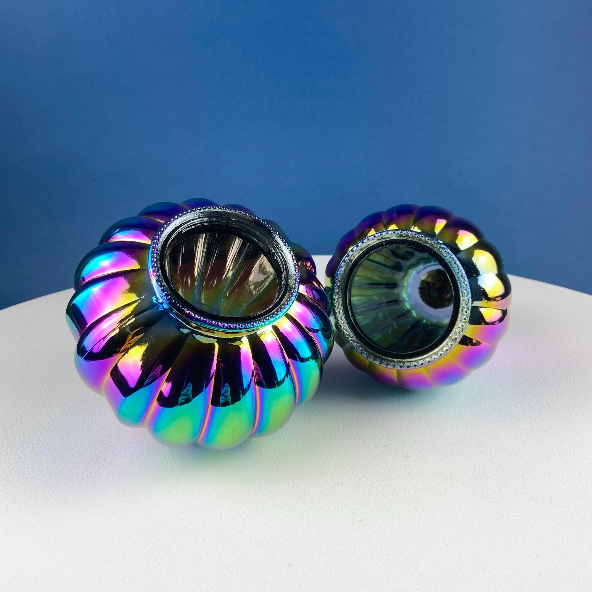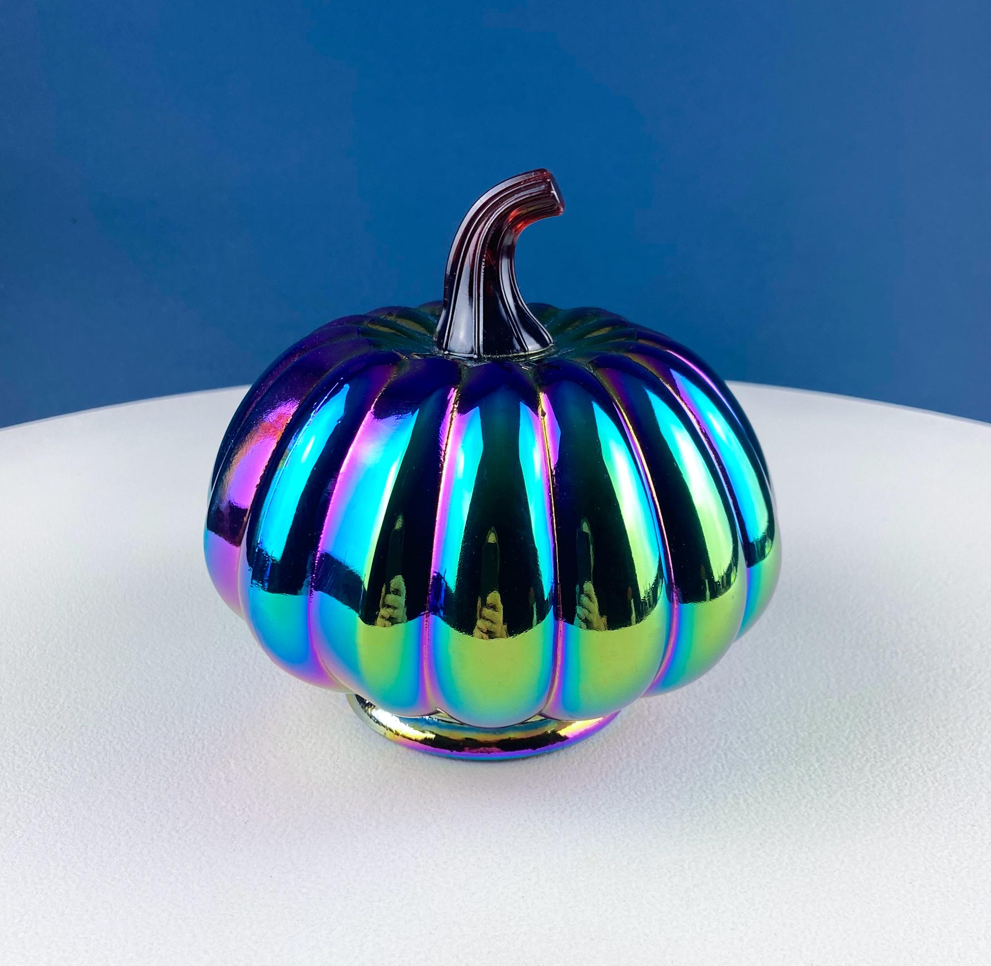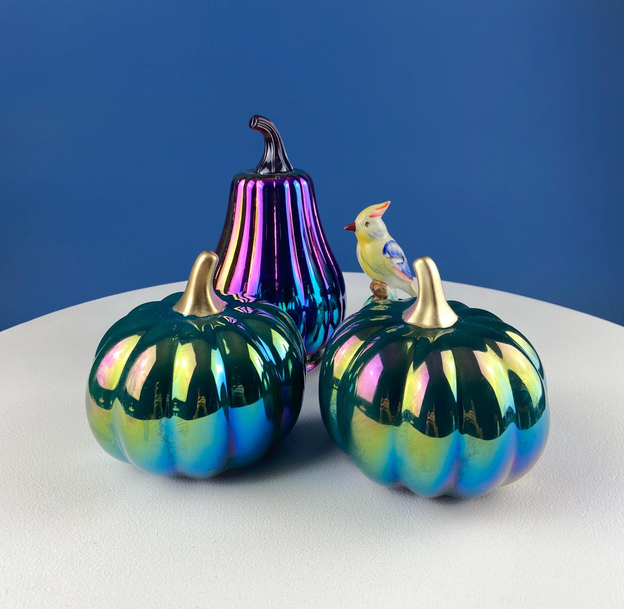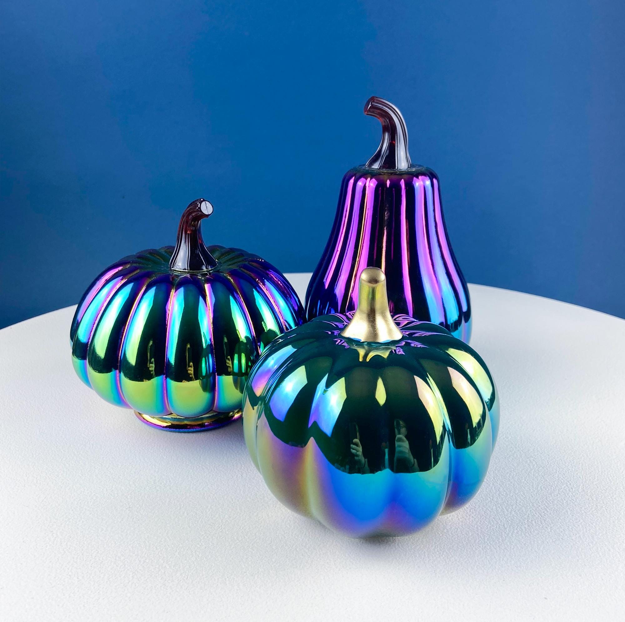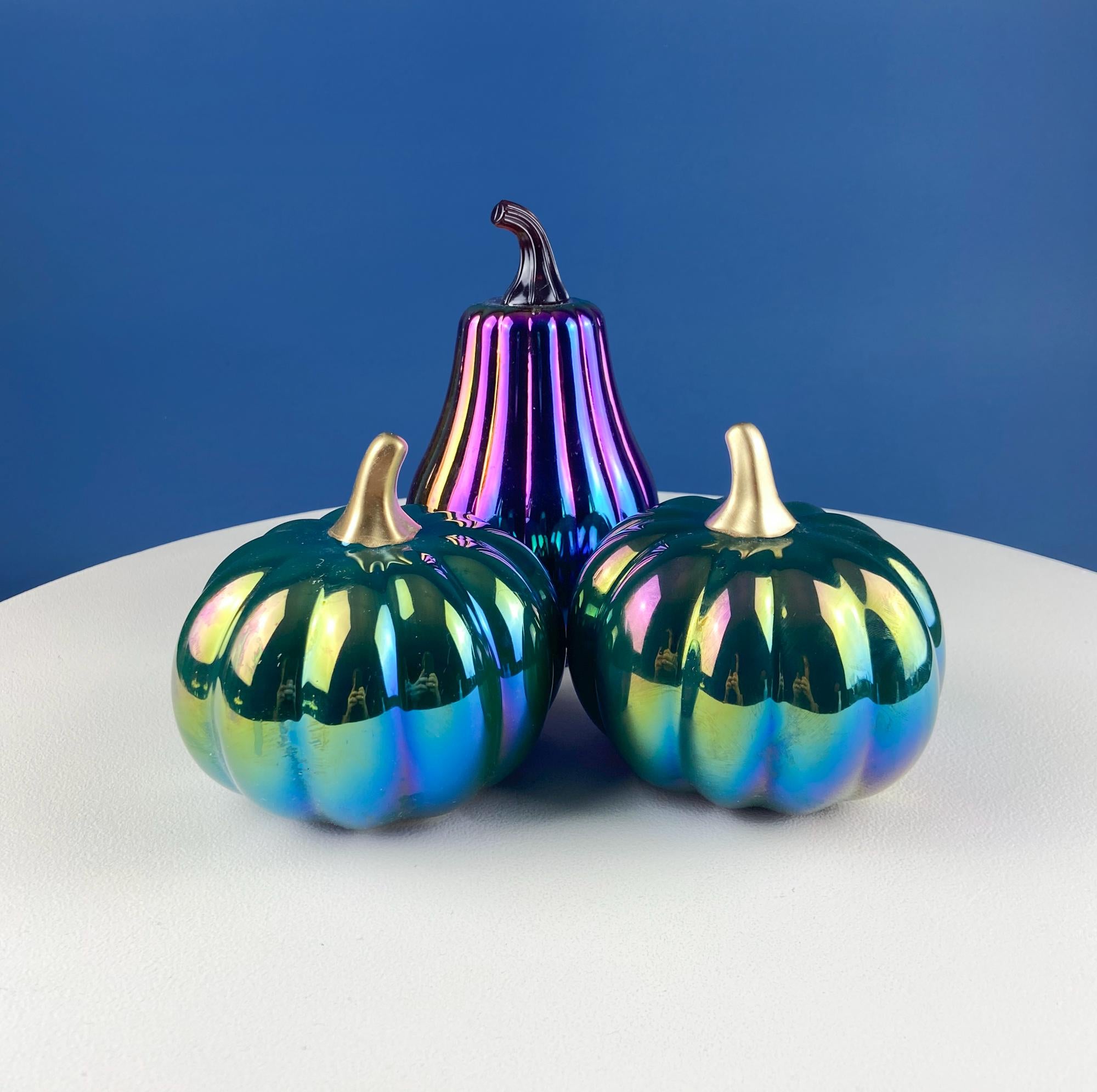 Set of 3 Iridescent Glass & Ceramic Pumpkins Gourds. Home or Retail Fall Decor. Halloween Display. Thanksgiving Table Centerpiece.