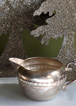 Silver Plated Creamer with Ornate Handle. Creamer with nice patina. Serving Cream Dish.