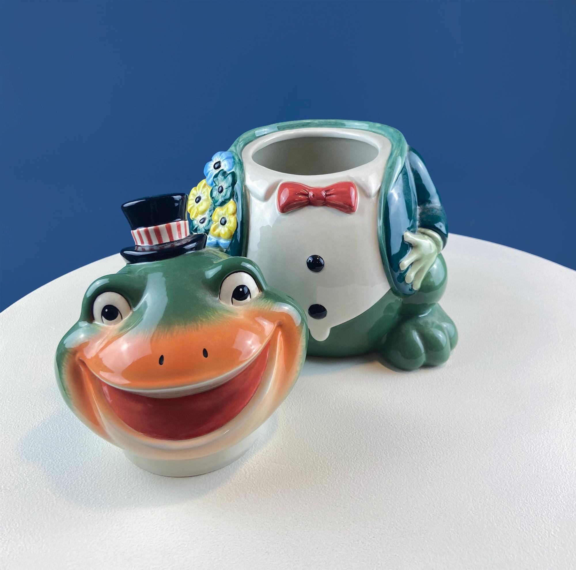 Smiling Frog Cookie Jar by Dept 56. Dapper Toad with Flowers Porcelain Storage Canister. Dining Kitchen Decor. Kids Room. Modern... Read More