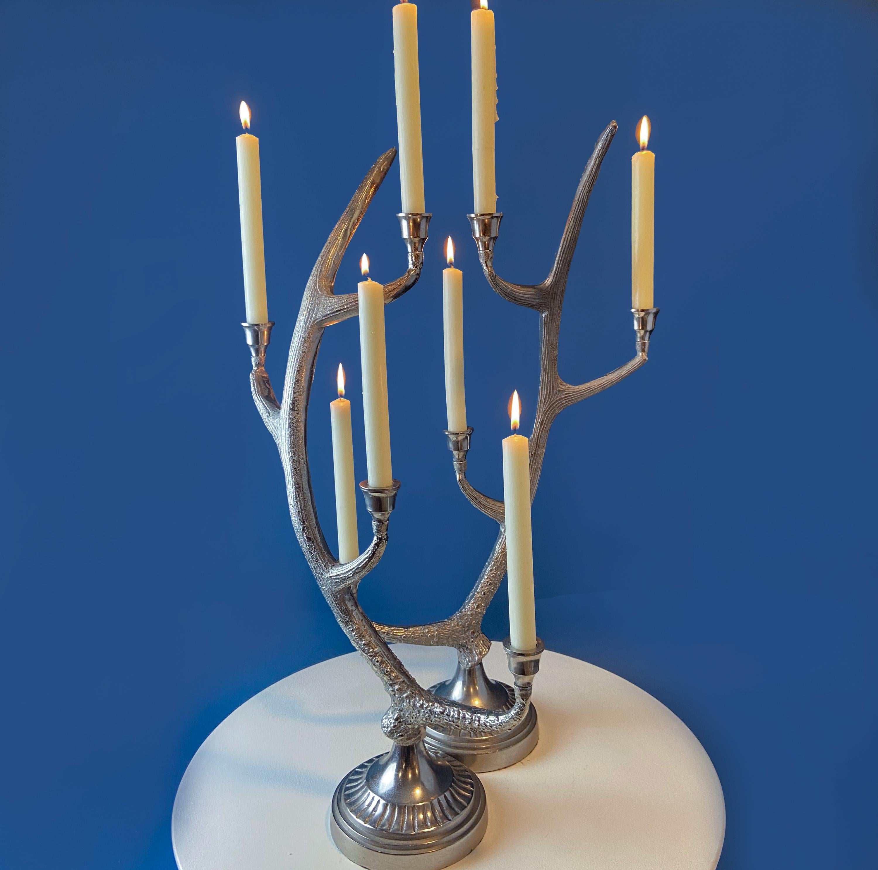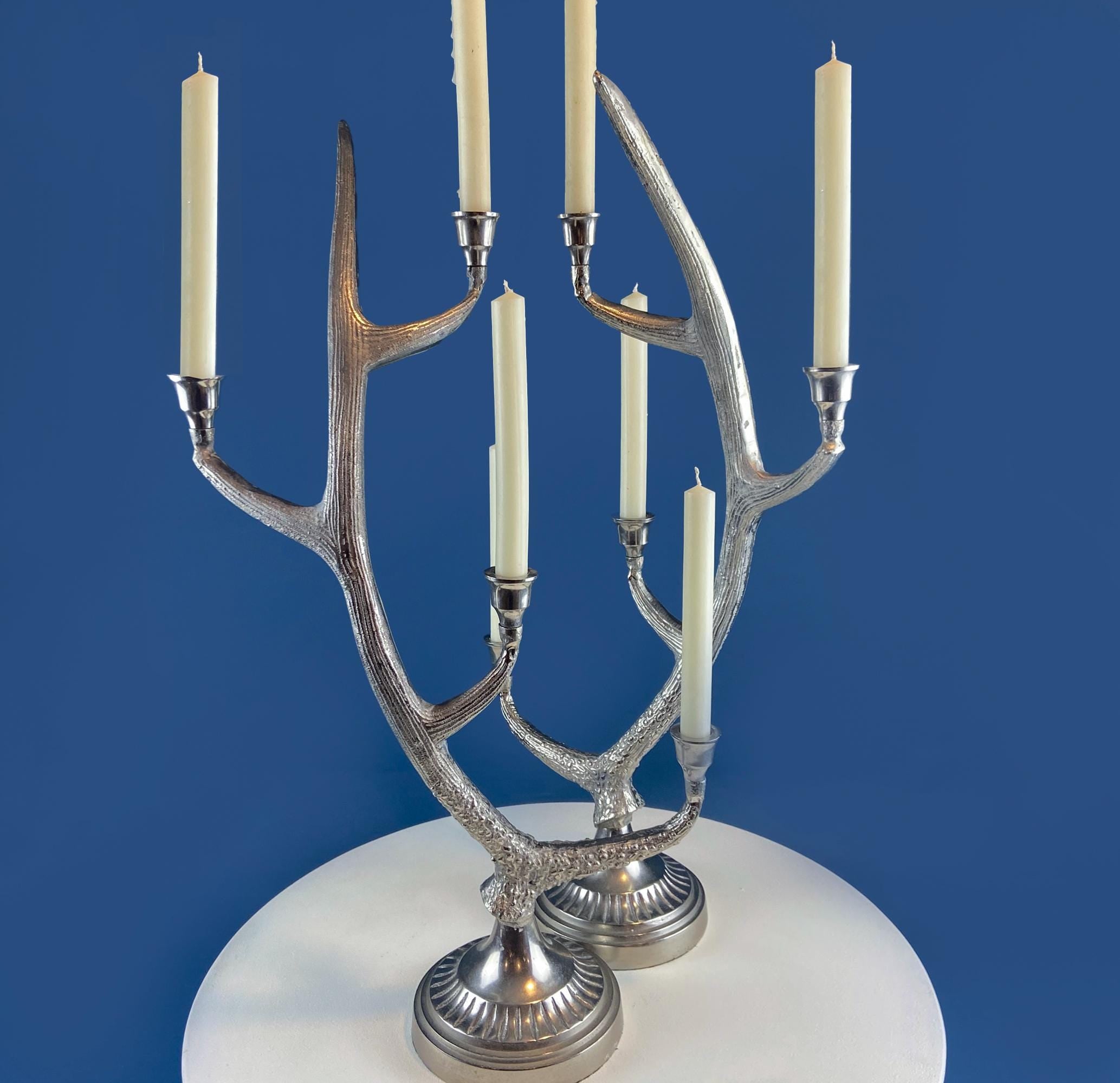 Stainless Steel Metal Antler Candle Holders. Dining Room Table Centerpiece. Set of 2 Candelabras. Hold 4 Standard Pilar Candles Each.... Read More