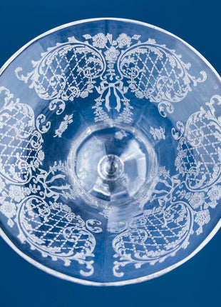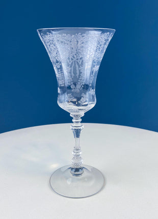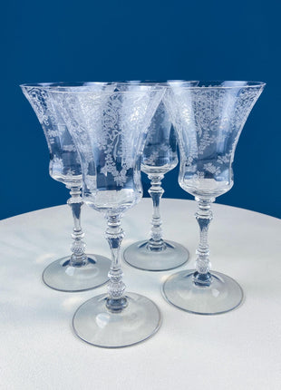 Vintage Cambridge Minerva Clear Etched Crystal Wine Goblets. Stunning Stem Design. Intricate Etching. Set of 4 Stemware. Dining Room Decor.