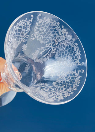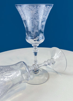 Vintage Cambridge Minerva Clear Etched Crystal Wine Goblets. Stunning Stem Design. Intricate Floral Etching. Set of 4 Stemware. Dining Room... Read More