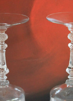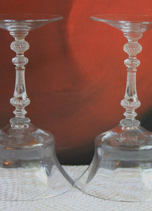 Vintage Crystal Glasses with Ornate Stems and Paneled Bowl. Set of Six Modern Elegant Glasses.