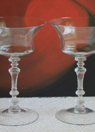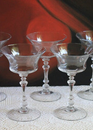 Vintage Champagne Crystal Glasses. Glasses with Ornate Stems and Paneled Bowl. They have a beautiful elegant shape. Set of Six... Read More