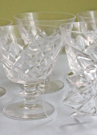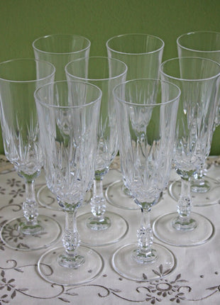Vintage Crystal Glasses. Eight Crystal Glasses. Crystal Bar Ware. Fine Stem Ware with Ornate Stem. Gift for Him. Bachelor or Bachelorette Party Gift. Mint condition. No chips, cracks or clouding. Price is for a set of eight beautiful glasses. We also have some other pattern glasses available in our store. Please click a link below to see them.